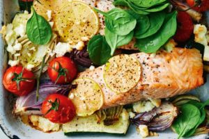 Home>> Greek Lemon and Feta Salmon Tray Bake Try this nutritious and quick Mediterranean-style greek lemon and feta salmon bake for your next meal! Brought