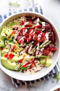 Home>> Spicy Tuna Poke Bowl Looking for a refreshing nutrient-packed lunch? A spicy tuna poke bowl will be sure to hit the spot and keep
