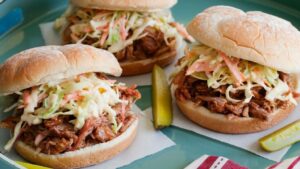 Home>> Pulled Pork Barbecue Sandwiches A delicious summer staple, take your next backyard get-together up a notch with this heavenly pulled pork sandwich recipe! Brought