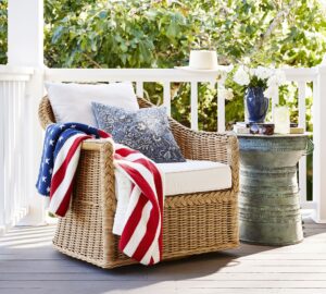 Drape your backyard in comfort and Americana charm with the Americana Cable Knit Throw from Pottery Barn. Featuring a cozy, chunky knit and a bold